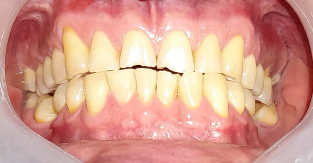Dientes: Puente Del 45 al 48 y del 35 al 38, Coronas del 34 y 44 y carillas del 15 al 25 y del 33 al 43